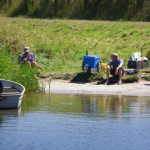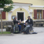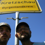 und schon sind wir wieder zurück in schaffhausen und der schweiz und den freundInnen. das kam so: am dienstag haben wir das meer wieder hinter uns gelassen und sind dem binnenland tag um tag näher auf die pelle gerückt. wir haben uns vorgenommen, all die lieben leute nochmals zu besuchen, die die reise zu DEM erlebnis gemacht haben. ihr dürft jetzt kurz überlegen, wer da wohl in die engere wahl kommt……….(studierpause)……..die erste station war nur gerade eine wandertetappe vom meer entfernt und es waren bürgermeisters. als der lange den johannes, das ist der bürgermeister von franzburg, sah und ihn auch freudig begrüsste, sah ihn dieser nur ungläubig an. nach der bemerkung „bart dazu denken“ machte es klick und sogleich wurden wir zu eis mit kirschen eingeladen und plauderten noch ein wenig über unsere erlebnisse. und schon konnten wir uns auf die nächsten highlights freuen in form von fischessen im klabautermann und selbstgerautem aus dem brauhaus. es wurde wieder eine lange nacht mit den wirtsleuten, die uns mit geschichten und anektoten aus der ddr und geistigem aus der flasche unterhielten. davor kürten wir den warener minigolfmeister. anton konnte dabei nicht verbergen, dass er auch hier ein meister seines fachs ist und mit gut 2 schlägen vorsprung gewann.