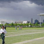 schon stehen wir vor den toren berlins! leider will man uns nicht, sprich alle bezahlbaren backpackers und jugis sind ausgebucht und das nicht nur heute sondern auf die nächsten zehntausend jahre hinaus. dies kann schon auf die nerven gehen, wenn nach 10 stunden auf den beinen einfach keine bleibe zu kriegen ist. der nachteil am wandern ist dabei, dass wir nicht so schnell ausweichen können uns eine übernachtungsmöglichkeit 10 kilometer entfernt immer auch fast zwei stunden zusätzlichen marsch bedeuten. so beschliessen wir, berlin noch ein wenig länger zu belagern und nisten uns in einem camping in der nähe von wannsee-berlin direkt an der ehemaligen grenze ein. ist äusserst spannend, durch den wald zu lungern und all die ehemaligen brücken, trampelpfade und wachtürme zu sehen. vielleicht geht die fantasie auch hie und da mit uns durch aber uns fasziniert. immerhin haben wir das brandenburger tor und die schweizer botschaft gesehen.
